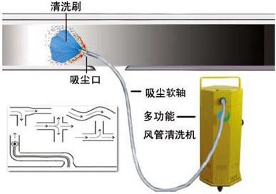 适用于φ80-500mm*1000mm 圆形或矩形风管以及超扁平风管。具有工业级设计,低压控制电路,无触点开关,超大扭矩驱动电机。三个大功率吸尘电机,高效过滤装置,10M 内置软轴全金属防静电柔性吸尘管,专利设计的垂直缝裂双向气流控制清洗头,隔音通风设计等。面板控制和远距离线控双“核”设计,无极变频精确调速,手动、自动两档转向控制系统,4 档位水平横摆时间控制系统。多功能接口可外接吸尘管进行吸尘作业,具备工业吸尘器的优异功能,实现一机多能。